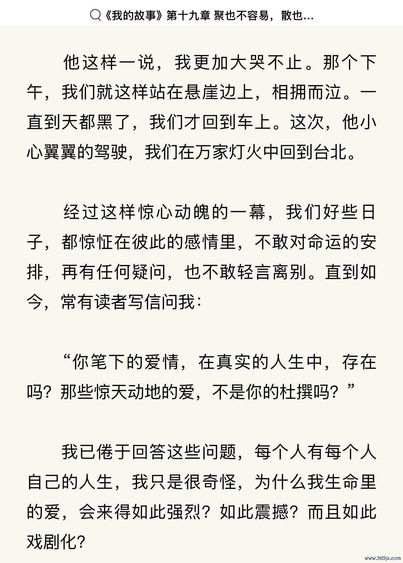 琼瑶在自传《我的故事》第 19章讲到九游体育娱乐网,听了琼瑶闹永别的话,变得生无可恋,谋划在山崕殉情。