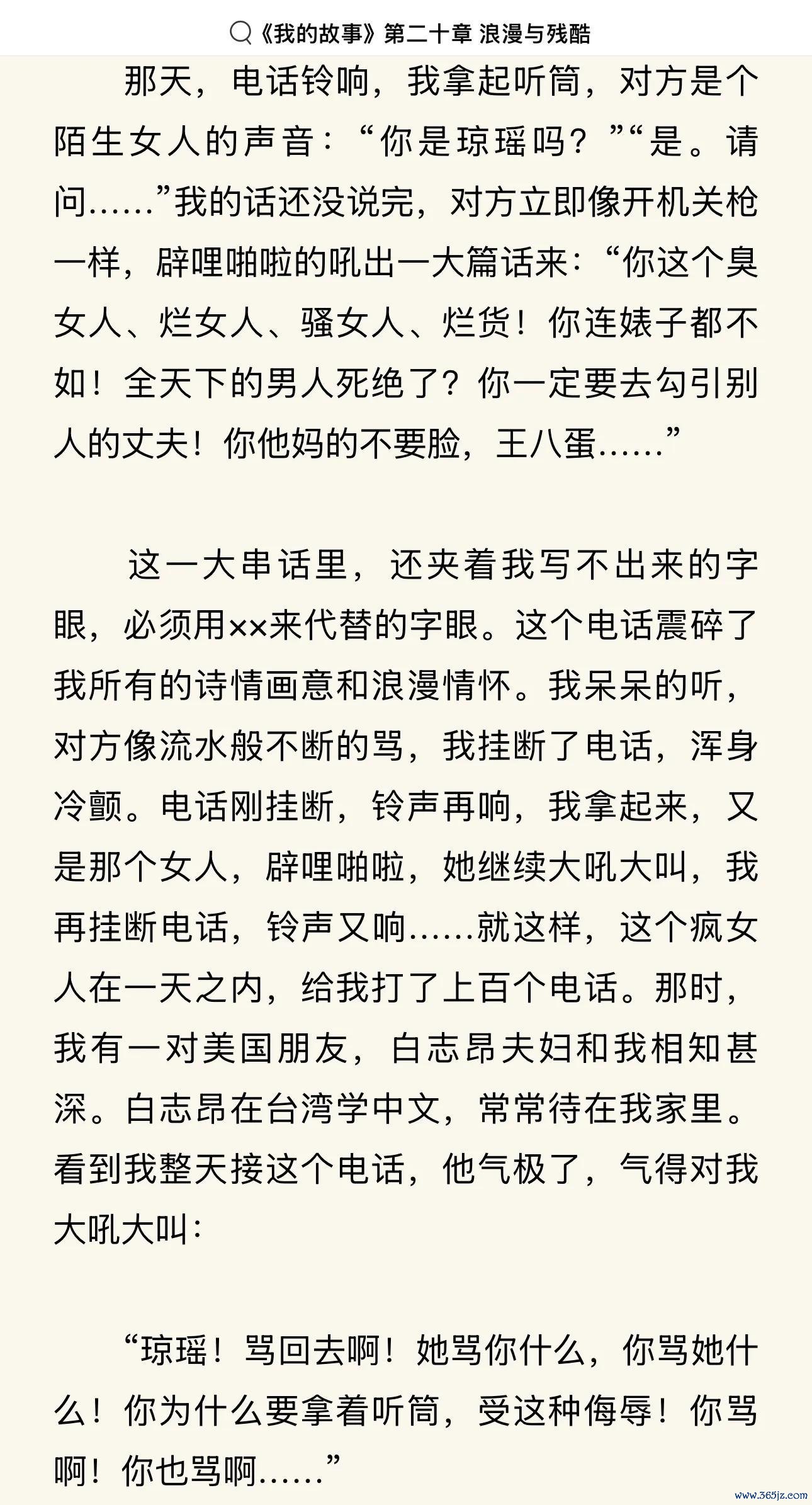 一天,琼瑶坐在沙发上,电话铃响,琼瑶提起了电话,一个生疏女东说念主的声息传来,“喂喂”,她细则是琼瑶后,霎时阵容汹汹,歇斯底里,扬声恶骂起了琼瑶,说她是Shao货是biao子,是烂女东说念主臭女东说念主,骂得相配从邡,极尽侮辱的字眼。