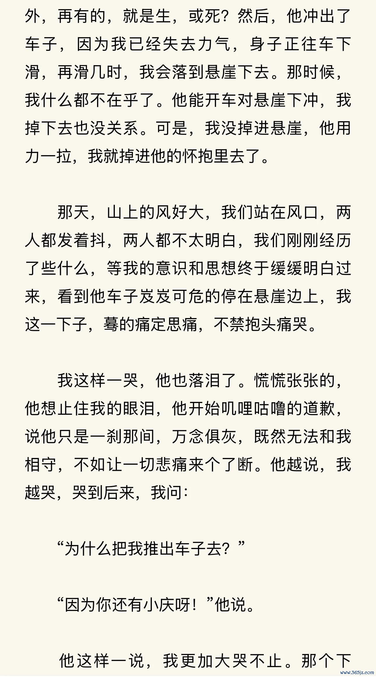 平鑫涛看见琼瑶不顾安慰,扑在了车头上,赶蹙迫刹车,然后两东说念主泪流满面、隔窗相望,都被这种热烈的心境发怔了,本来他们都中意为对方去死。