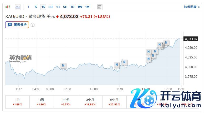 规则发稿,现货黄金飞腾1.83%,报每盎司4073.03好意思元。12月交割的好意思国黄金期货飞腾1.76%,报每盎司4080.50好意思元。