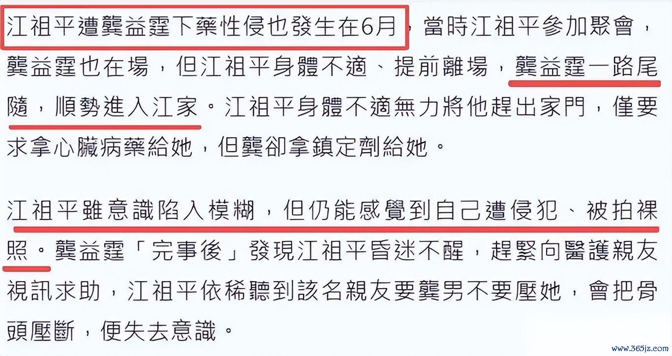 作品声明:本体取材于网罗现金九游体育app平台 本年8月18日,演员江祖平顷刻间曝出一条重磅音信: 她的别称女性一又友遭到了性侵,流程还被拍成了视频。 因为不知说念该若何办,只可向江祖平进行乞助。 其时有东说念主认为,根底就莫得什么“一又友”,齐是江祖平思要翻红良友。 然而跟着爆料越来越多,大师才发现,她“一又友”的事也只是冰山一角。 祖平爆料刮风云,龚氏副总被停职 根据江祖平的形貌,她那位一又友之是以莫得不屈,是因为被下了药。 其时一又友身段不适,于是让某“G姓男人”去帮她拿腹黑病药。 然而