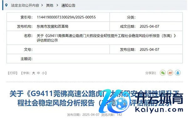 近日九游体育娱乐网,集聚高尚传 “虎门大桥10月起禁闭维修”的讯息 激发存眷 网传截图 经记者核实,该信息装假 诚然此前东莞市发展和调动局 曾发布过干系评估前的公示 其中提到预测开工时辰 但并非实质施工时辰 今天(9月29日) 广东虎门大桥有限公司方面 明确示意: 虎门大桥在2026年春节前 不会接收全封或半封格局 具体禁闭时辰及有筹算,现在均未详情 虎门大桥位于珠江口狮子洋上,运动广州市南沙区和东莞市虎门镇,全长约16公里,双向6车说念。主桥长4.6公里,主跨为888米的钢箱梁悬索桥。