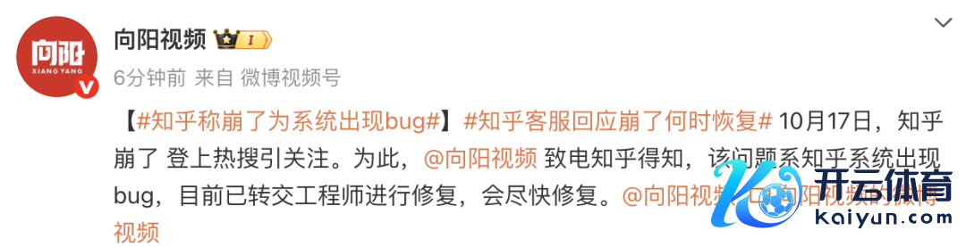 10月17日九游体育娱乐网,“知乎崩了”登上微博热搜榜第一。 不少网友反应,知乎本日上昼出现作事故障,PC网页端无法投入,App端可线路首页但无法检察问答细则页。 对此,晨曦视频致电知乎得知,该问题系知乎系统出现bug,当今已转交工程师进行陶冶,会尽快陶冶。 剪辑:吴祈 审核:魏国峻 【着手:轮廓晨曦视频】 声明:此文版权归原作家所有,若有着手装假芜俚侵扰您的正当职权,您可通过邮箱与咱们获得干系九游体育娱乐网,咱们将实时进行处分。邮箱地址:jpbl@jp.jiupainews.com